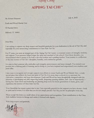 Bob began his martial arts journey studying Choy Li Fut and Hung Ga in the 1980s. He took a break to raise his family and advance his profession but never stopped looking for qualified instruction in Chinese Martial Arts. In 1998, he saw a demonstration by Master Aiping Cheng doing Chen style taiji. He began studying with her and then teaching for the next 22 years. He learned the full Chen and Hebei Xingyiquan curriculums. In 2017 Master Aiping retired but he continued teaching at the school she started until 2025. Bob supplemented his training with in person workshops with Chen Zhenglie and Chen Xiao Wang. He also sought out regional experts in Tuishou. During Covid, along with Neil, they set out on a journey to learn Jianfa. He connected with Laoshi Scott Rodell and has been a member of his academy and was active in bringing Laoshi Rodell to Connecticut for in depth workshops on multiple occasions.